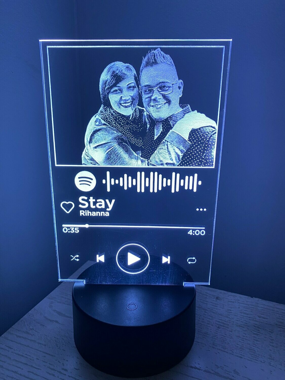 Esta lámpara personalizada es una variante de la placa Spotify con el accesorio de la base de luz. Regalo Para Novionovia De Aniversario Lampara Personalizada. Manta personalizada Canción Spotify. En Reyes todos nos merecemos regalos nos hayamos portado mal o bien.